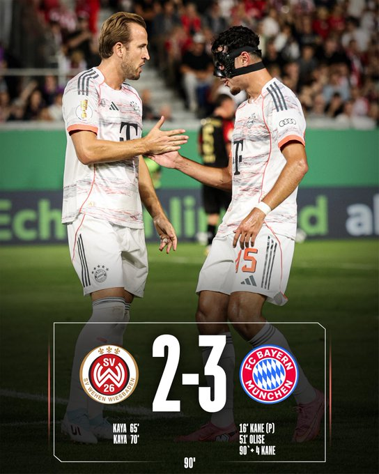 另外,同样表现令人揪心的还有德甲豪门拜仁。不过还好的是,在德国杯首轮比赛中,客场作战的拜仁3-2险胜德丙球队韦恩,没有爆出冷门。在迪亚斯接连错失机会之后,拜仁依靠凯恩的绝杀才惊险晋级。