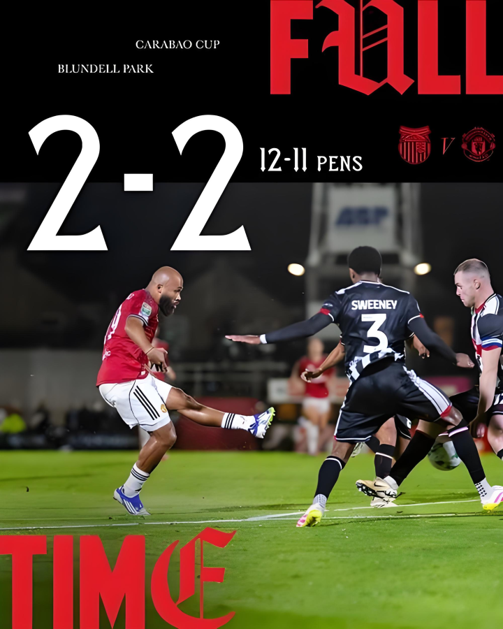 最终,曼联点球11-12不敌格林斯比,惨遭出局。
